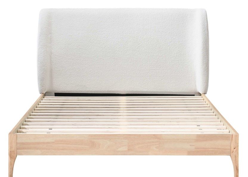 - The Halfden bed is a modern classic. Characterised with a soft touch upholstered Bouclé headboard and strong wooden frame, this distinct bed design is an ideal bed for modern bedroom decor. The headboard features a stunning winged headboard and curved feet adding a touch of sophistication. The maximum weight load for the 4′6 frame is 300 kg, the 5′ frame is 400 kg, and the 6′ frame is 450 kg. Please note: Birlea beds are only suitable for a UK standard size mattress and the recommended maximum mattress height is 305 mm.