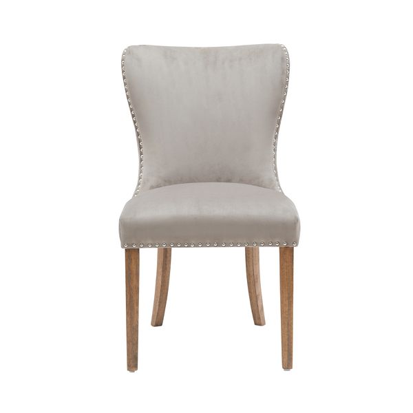 - The A1 Chair brings an elegant, timeless charm to any dining or living space. Upholstered in a soft velvet-style fabric, it features a beautifully curved backrest accented with subtle metal stud detailing for a refined, classic look. The solid wooden legs add warmth and stability while complementing the sophisticated upholstery. A stylish blend of comfort and luxury, perfect for contemporary and traditional interiors alike.