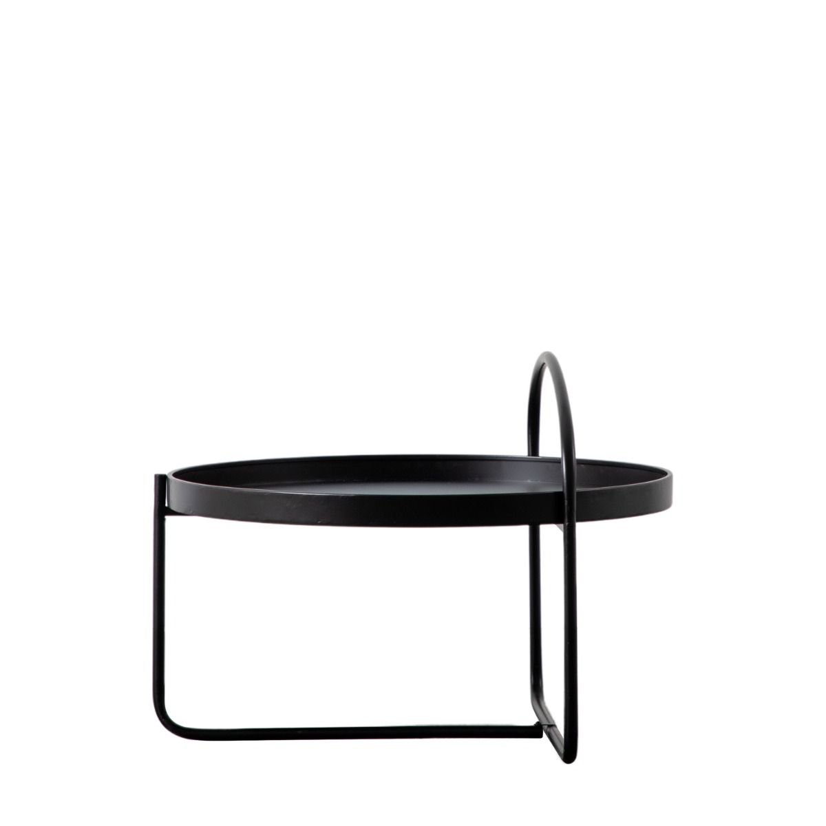 - This contemporary Coffee Table features a minimalistic design but is sure to add style to any space. The iron structure features a handle-like design in a black finish, perfect for a stylish modern living room. Featuring a tray style top which can be lifted off for further practicality.