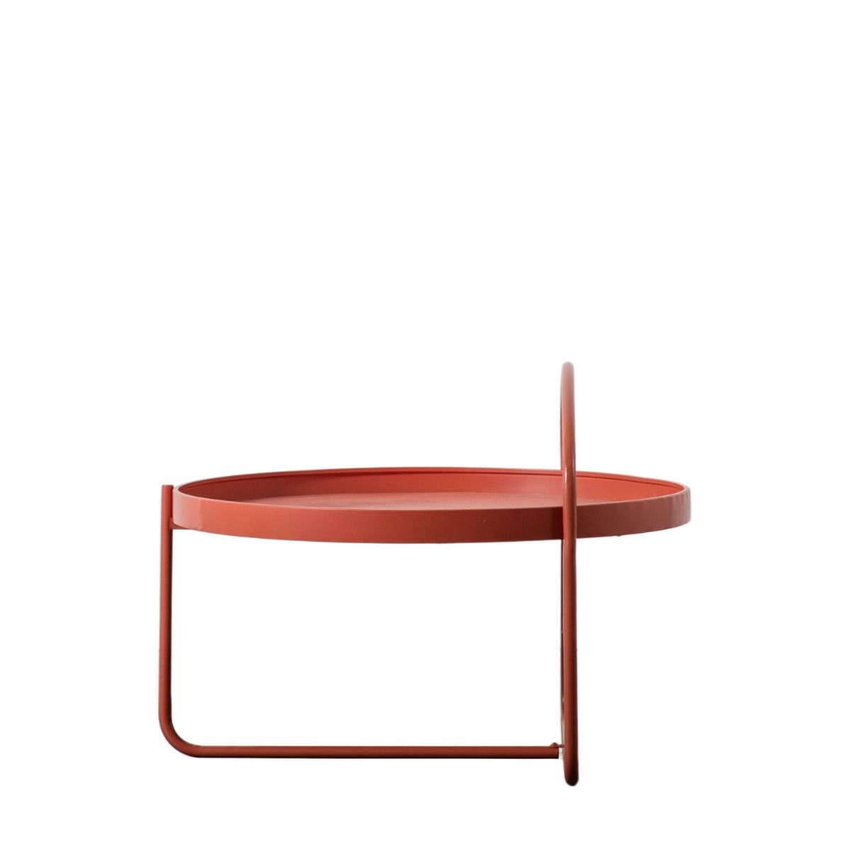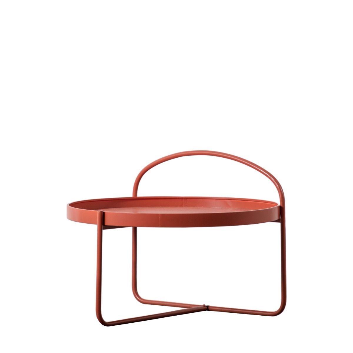 - This contemporary Coffee Table features a minimalistic design but is sure to add style to any space. The iron structure features a handle-like design in a Coral finish, perfect for a stylish modern living room. Featuring a tray style top which can be lifted off for further practicality.