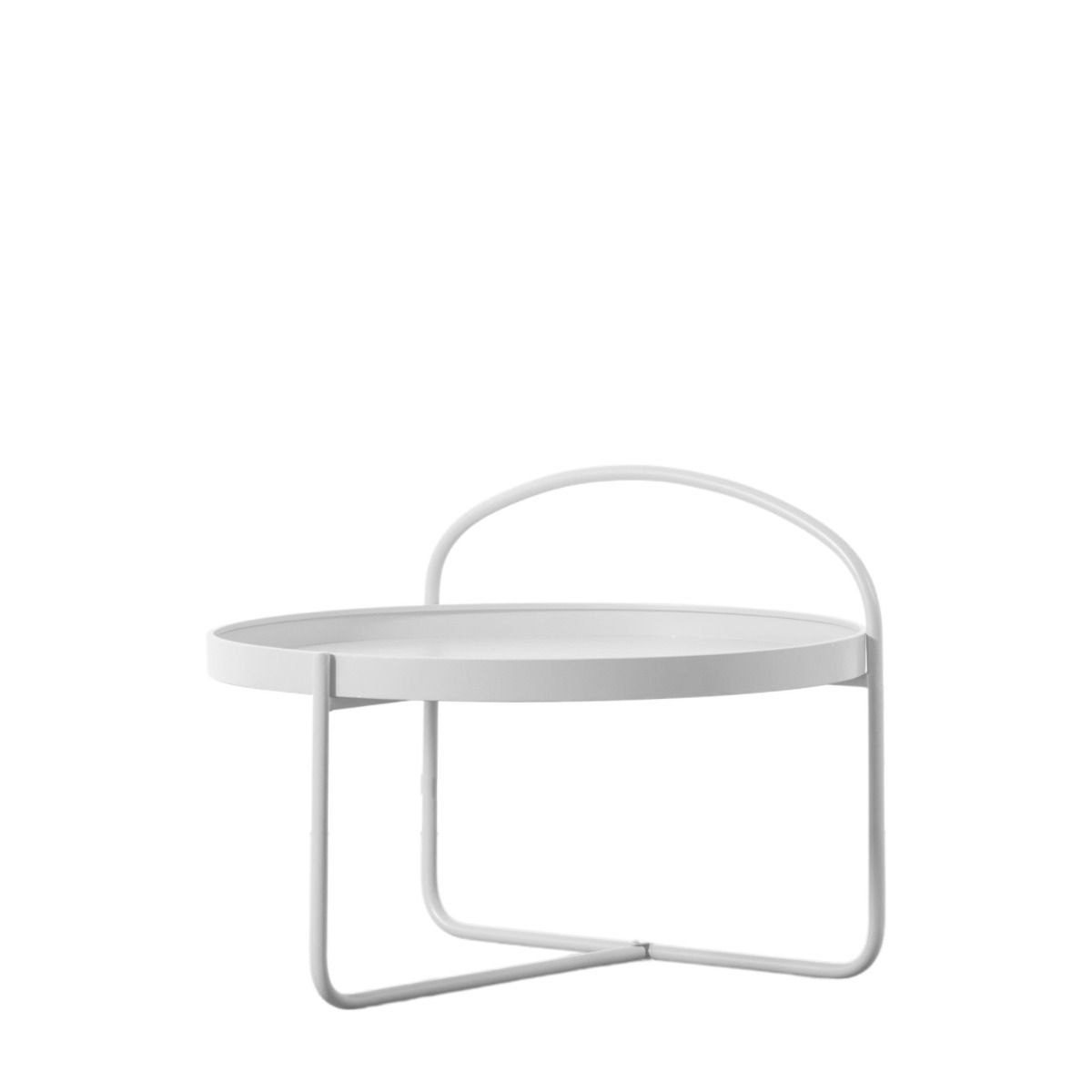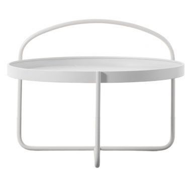- This contemporary Coffee Table features a minimalistic design but is sure to add style to any space. The Iron structure features a handle-like design in a White finish, perfect for a stylish modern living room. Featuring a tray style top which can be lifted off for further practicality.