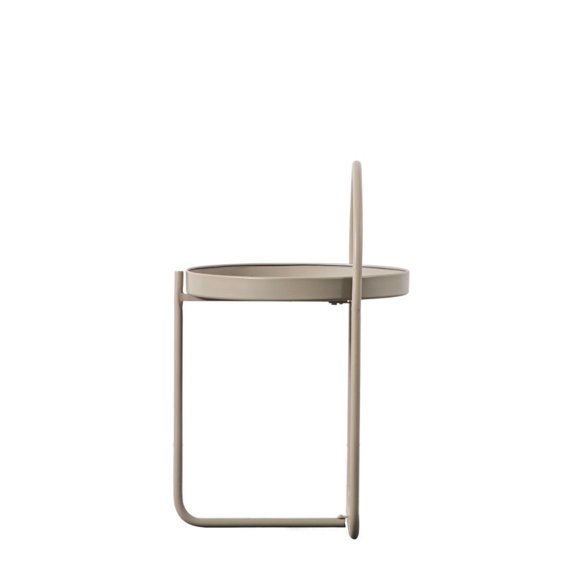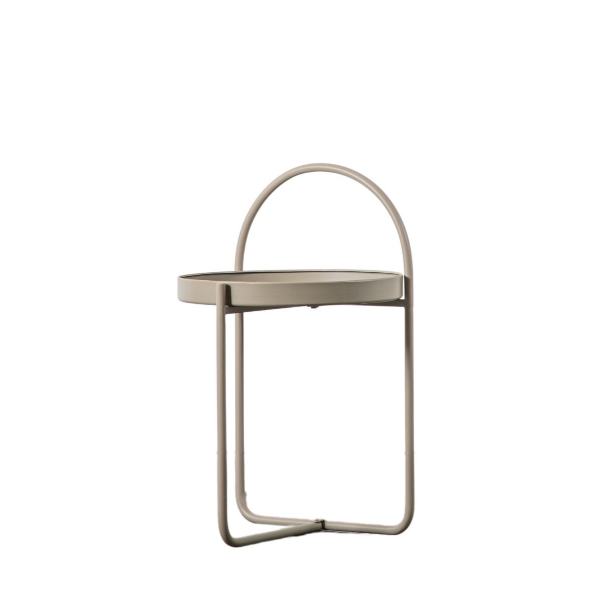 - The Abbas Latte Side Table by Gallery Living is a true statement piece. A practical, removable tray top, making this side table one of a kind; the continuation of one section of this Side table creates a 'Handle' effect, making this piece unique and intriguing. With a range of eye-catching tones and colours, this Side table is perfect for adding a pop of colour into your home interior. Also avaliable in a matching Coffee Table.