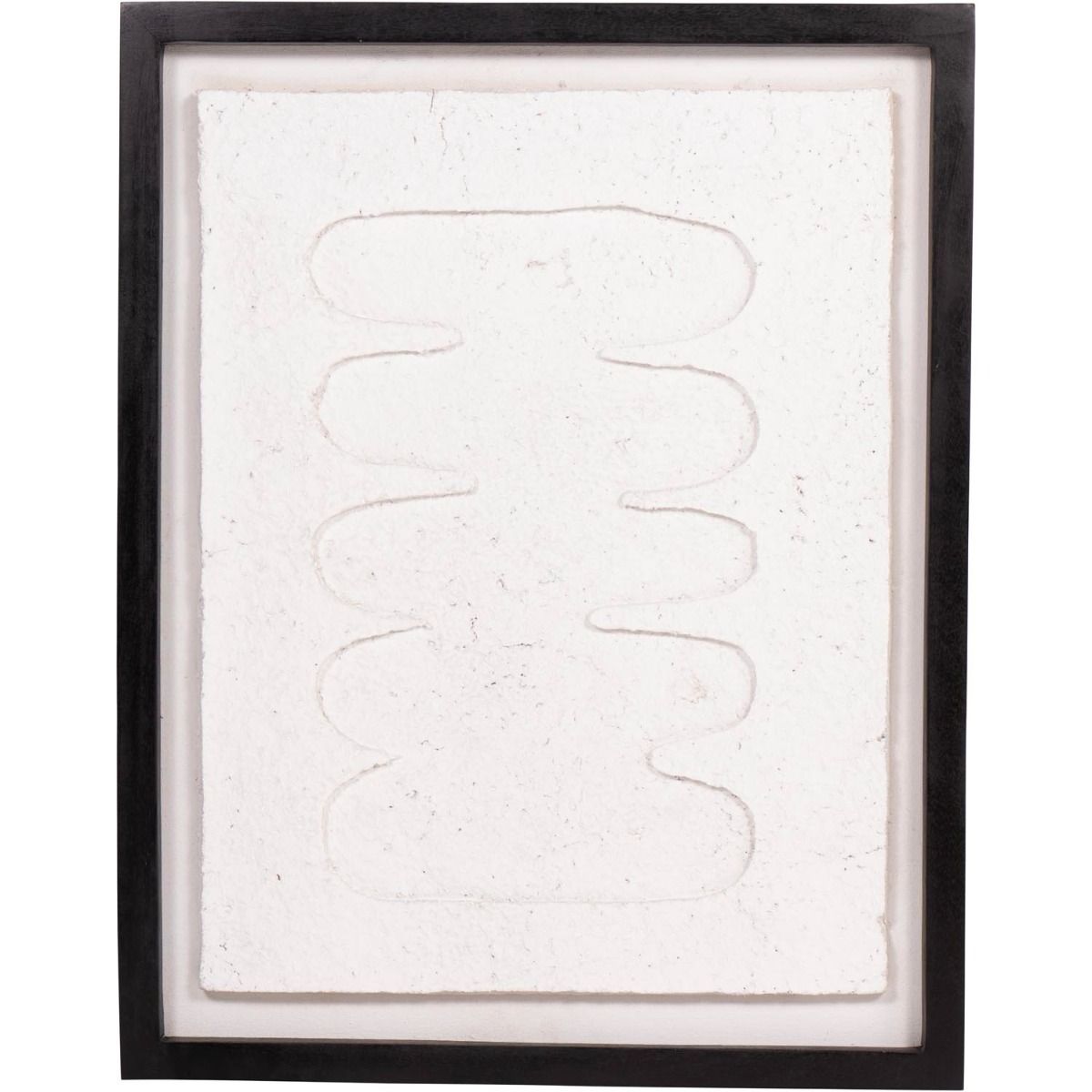 - Abstract Embossed Paper Mache Wall Decor, a tactile masterpiece in off white framed in solid distressed espresso coloured wood and backed with linen for added sophistication. This stunning piece seamlessly blends artistry and texture, making it the perfect addition to your living space. Three designs available all of which hang portrait. Portrait Hanging.