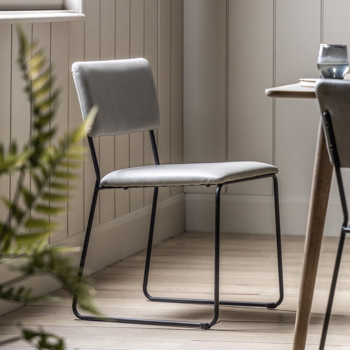 - Elevate the casual dining experience at home with our Battlebridge Silver Grey Dining Chair (a pair), these extremely solid and stylish chairs are the perfect Dining chair for any space. Two contemporary chairs featuring black metal frames paired with upholstered seats and back pads, for your comfort.