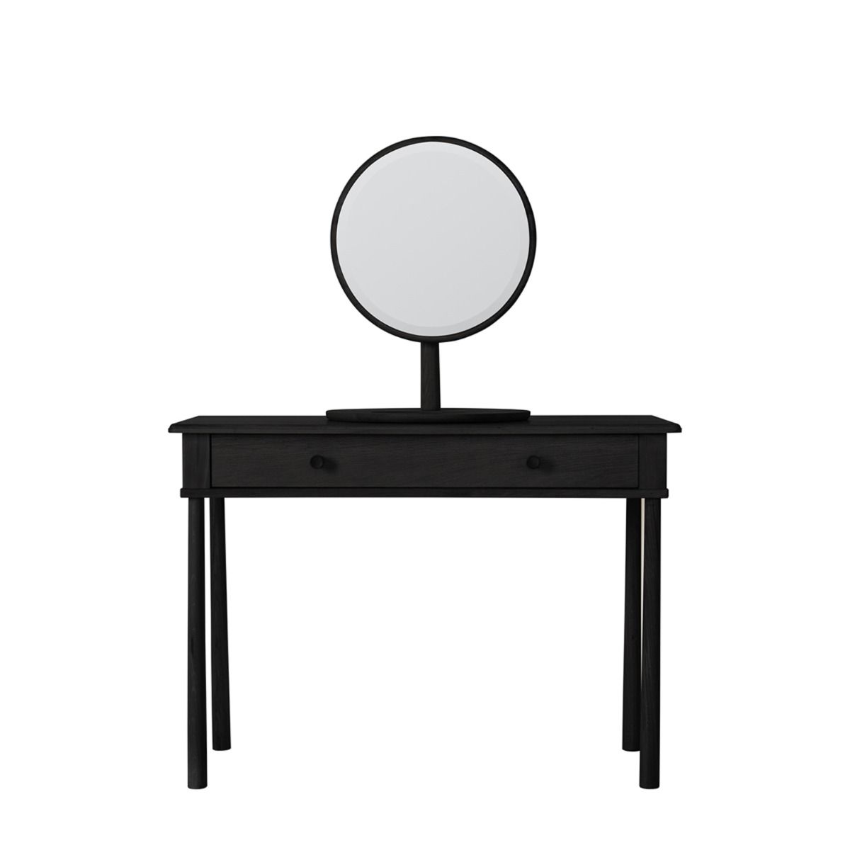 - This Scandinavian style attractive Beaumont Black Dressing Table is made from finest solid oak and veneers, to enhance the contemporary aesthetic colour palette. It contains a singe spacious drawer making this piece a stylish, practical and functional. With the ability to adapt to many different interior styles, this piece is sure to be a style-conscious and on-trend addition to your home. Matching furniture available. Looks beautifully complete when paired with the Beaumont Dressing Table Mirror.