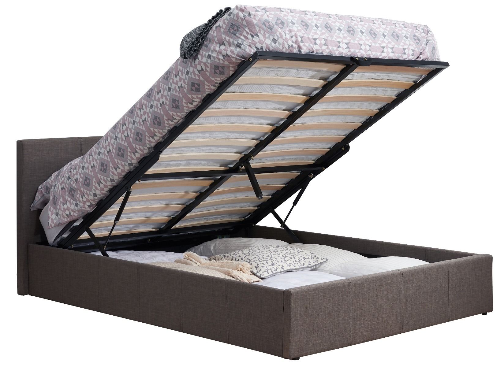 Classically designed, the Berlin Grey Double Ottoman Bed, covered in stylish fabric, adds both style and versatility to any space. With strong gas-lifts to access the storage space, this frame is available upholstered in steel, black crushed velvet and grey polyester. The Berlin Fabric Ottoman frame now includes a protective base sheet. With a sprung slatted base for natural bounce, the frame adjusts to where pressure is exerted most, providing greater comfort.