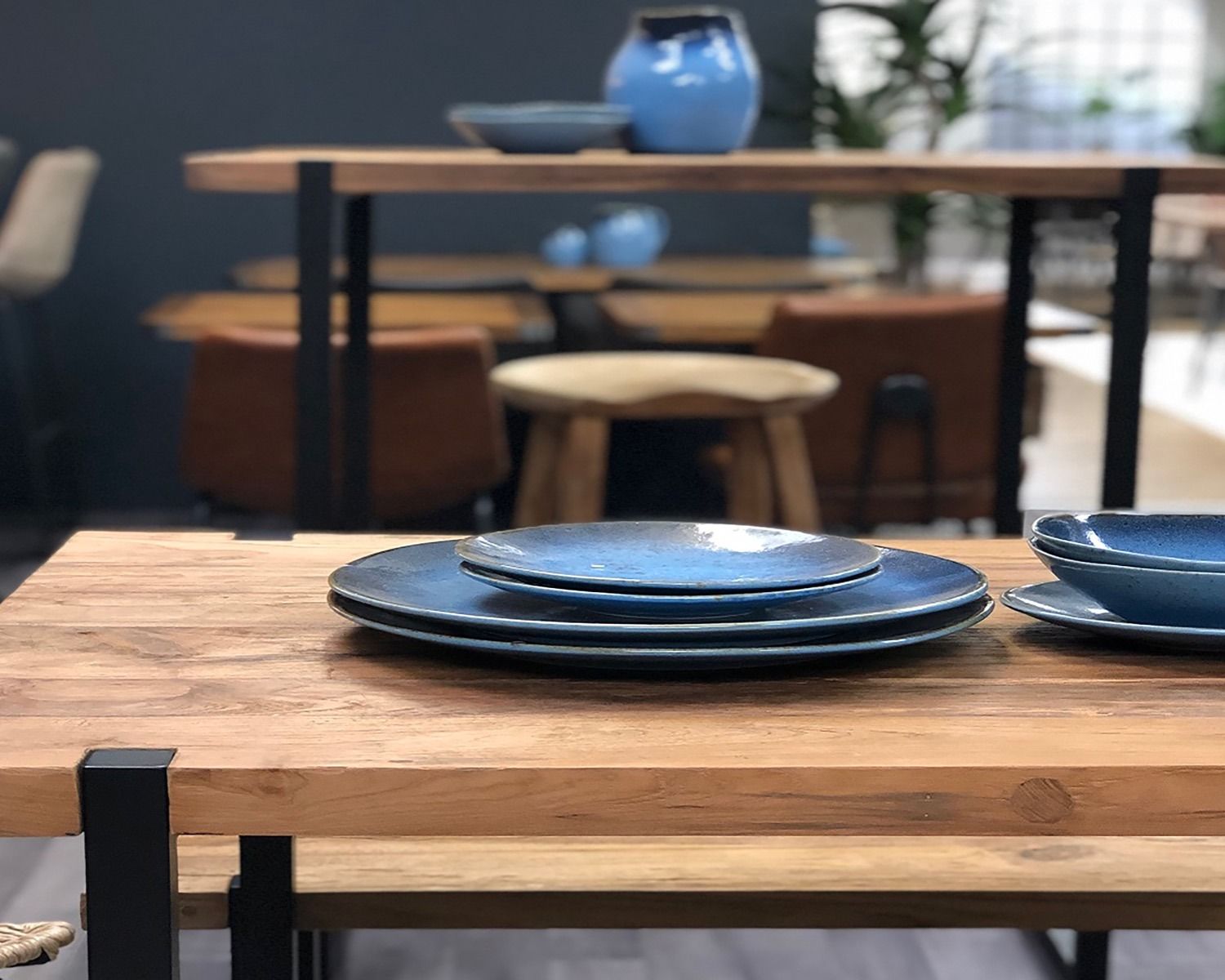 Reclaimed and rustic designs, this Bogart Dining Table combines smooth teak finishes, raw natural grain effects and a black industric metal frame box. Delivering a rough and cozy aesthetic with contemporary touches, suitable for indoor and outdoor use. Available to pair with our 'Bogart Bench (Set of 2)'