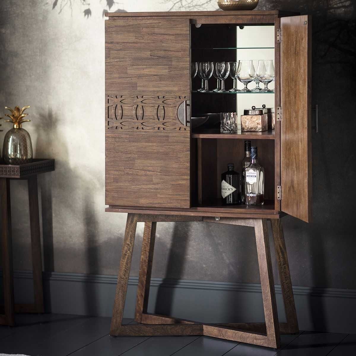 - Offering a rich and casual feel, this Boho Cocktail Cabinet features exquisite craftsmanship which enhances the natural characteristics and geometric grain of the wood. Perfect to store your favourite alcoholic tipples.