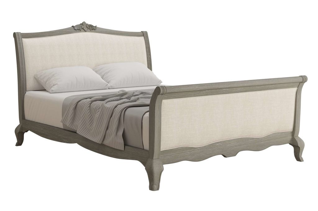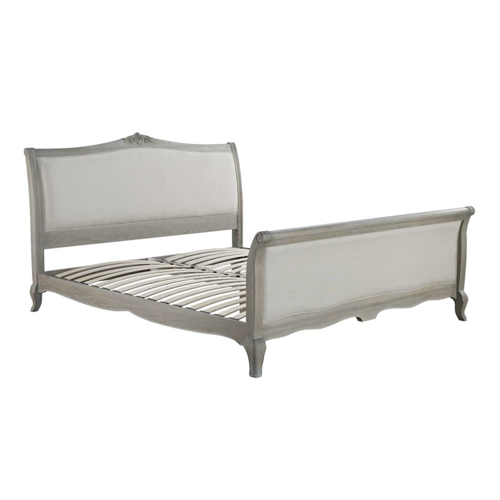 - The Camille High End 4'6 Double Bedstead has been upholstered in a neutral cotton & linen blend, which complements beautifully the antique finish of the wood frame. This is the beautiful French inspired collection, Camille from Willis & Gambier, featuring graceful curves and delicate silhouettes. Crafted from solid Oak and oak veneers, this bed has been completed in a rustic and antique weathered finish, which will enhance and blend seamlessly into most bedroom styles and decors. Available in alternative sizes and as a low foot end. Matching items available.