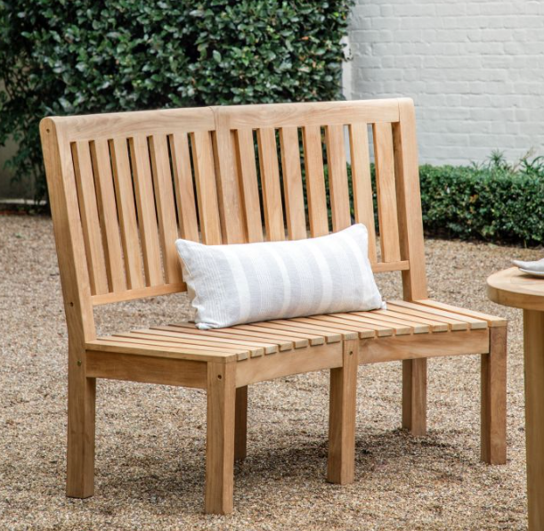 - Featuring an elegant high back and curved seat, this bench is the perfect stylish addition to your garden. Crafted from teak, which is suitable for the outdoor environment due to its high endurance and water resistance.