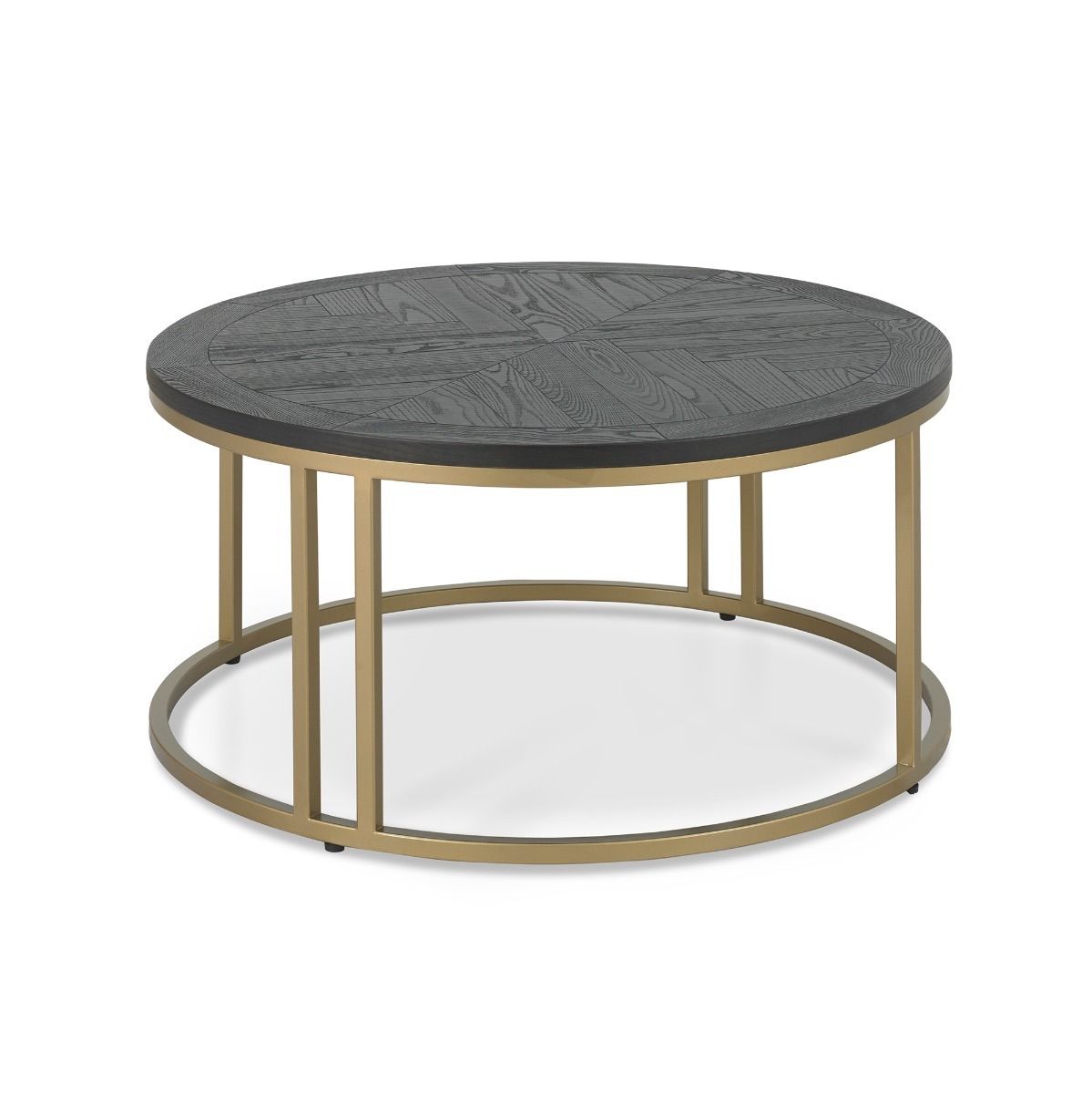 Add glamour and make a statement in your home with the Chevron Peppercorn ash occasional range. Saw cut ash marquetry tops are finished in a rich peppercorn coloured stain and married with a burnished satin brass metal base to give this range a chic and luxurious feel. Each of the hand-crafted boarded chevron patterned tops are wire brushed and distressed to give an authentic look and tactile feel, making the most of the beautiful and varied grains of ash. The radiused tops and bases combine beautifully with the linear frames to create a contemporary and slightly eclectic blend.