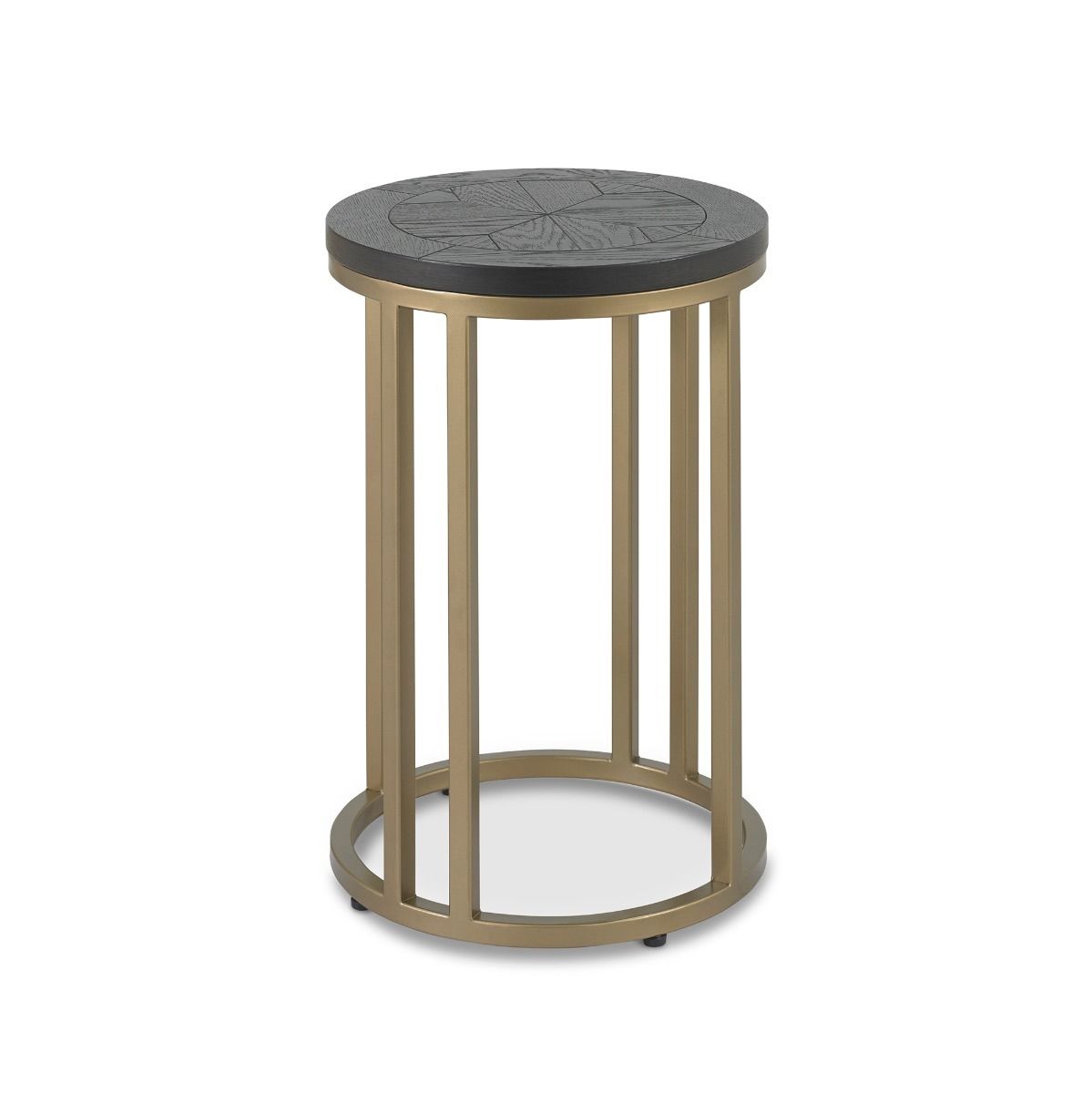 Add glamour and make a statement in your home with the Chevron Peppercorn ash occasional range. Saw cut ash marquetry tops are finished in a rich peppercorn coloured stain and married with a burnished satin brass metal base to give this range a chic and luxurious feel. Each of the hand-crafted boarded chevron patterned tops are wire brushed and distressed to give an authentic look and tactile feel, making the most of the beautiful and varied grains of ash. The radiused tops and bases combine beautifully with the linear frames to create a contemporary and slightly eclectic blend.