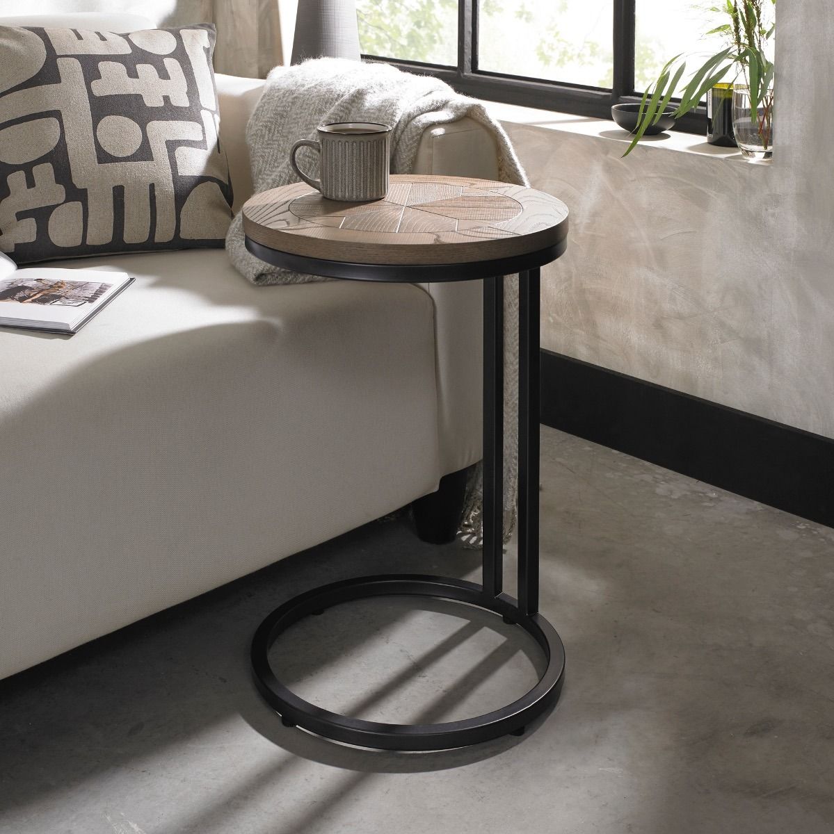 A bold and contemporary design that contrasts saw cut ash marquetry tops in a weathered finish with a fully welded black powder coated metal base, giving the range an on trend industrial look. Each of the hand-crafted boarded chevron patterned tops are wire brushed and distressed to give a rustic look and tactile feel, making the most of the beautiful and varied grains of ash. The radiused tops and bases combine beautifully with the linear frames to make a statement in any setting.