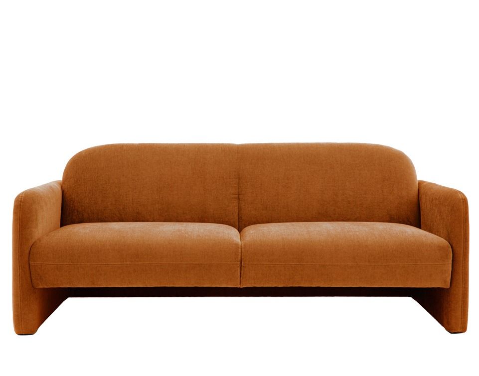 - With wide appeal, this 3 seater sofa's smooth design will fit right into any modern interior. The fuss free design with open space underneath the seat, straightforward arms and simple back creates a feeling of effortless design cool, perfect for making your living space a bright contemporary space. Also available in cream and blue colour choices.
