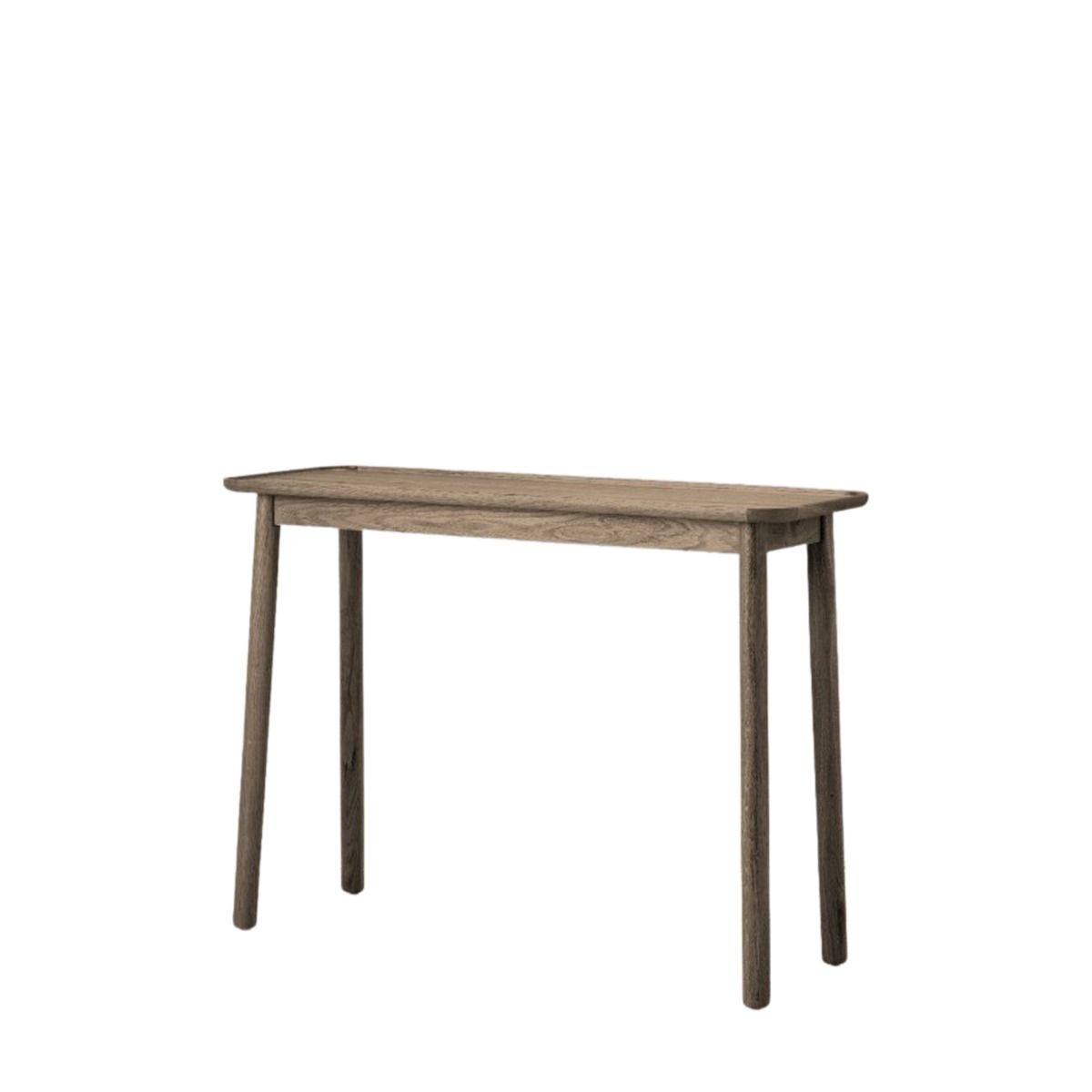 - The Eltham Console Table in Grey provides an instant update to your room interior with its contemporary look and design. Made with solid oak, it features the lipped edge table and natural sheen finish to showcase the beauty of oak. It comes with thin and tall legs to bring a compact look that saves space and makes for an efficient addition to your living room or hallway. The grey finish is a contemporary twist to the traditional console table from the range.