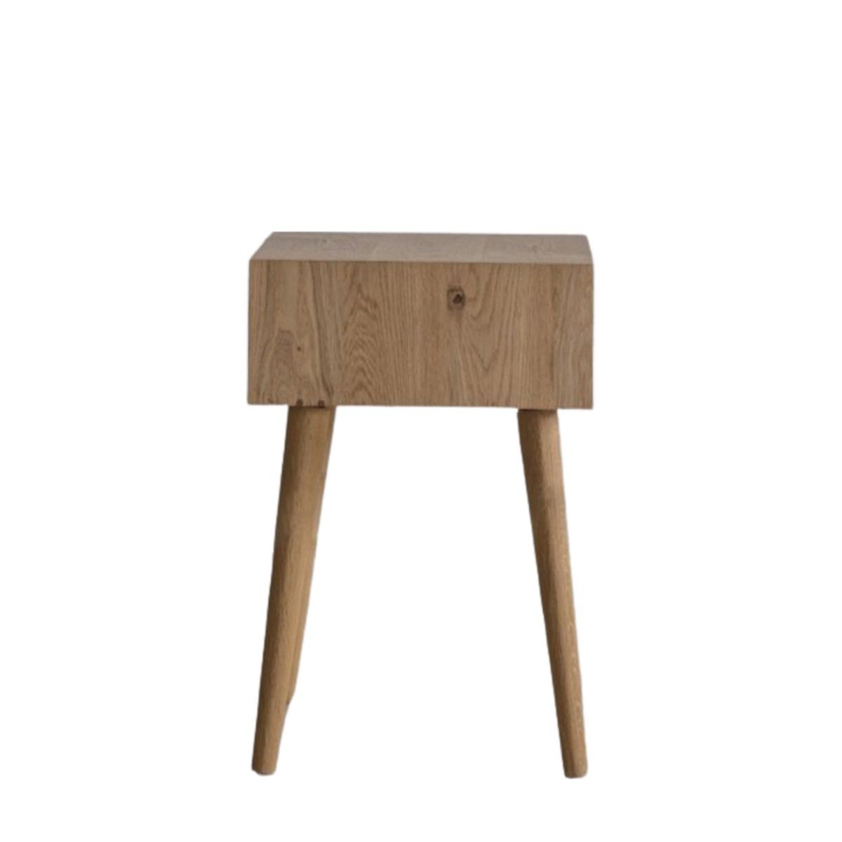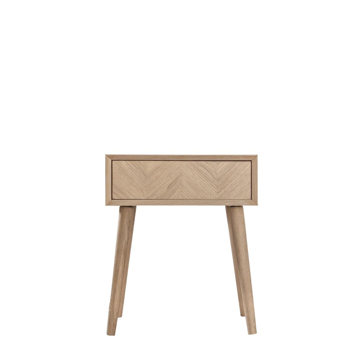 - The stunning Fresco 1 Drawer Side Table features a beautiful inlay chevron design, and is made using European oak and rustic oak structured veneers which show the natural beauty of the oak grain and knots. Finished in a specialist mat lacquer, which keeps the timber looking natural and dry, with brushed out grain, the table is tactile to touch and looks amazing. For added practicality, it features a drawer. The table is also great as a bedside, especially when paired with a Fresco Headboard.