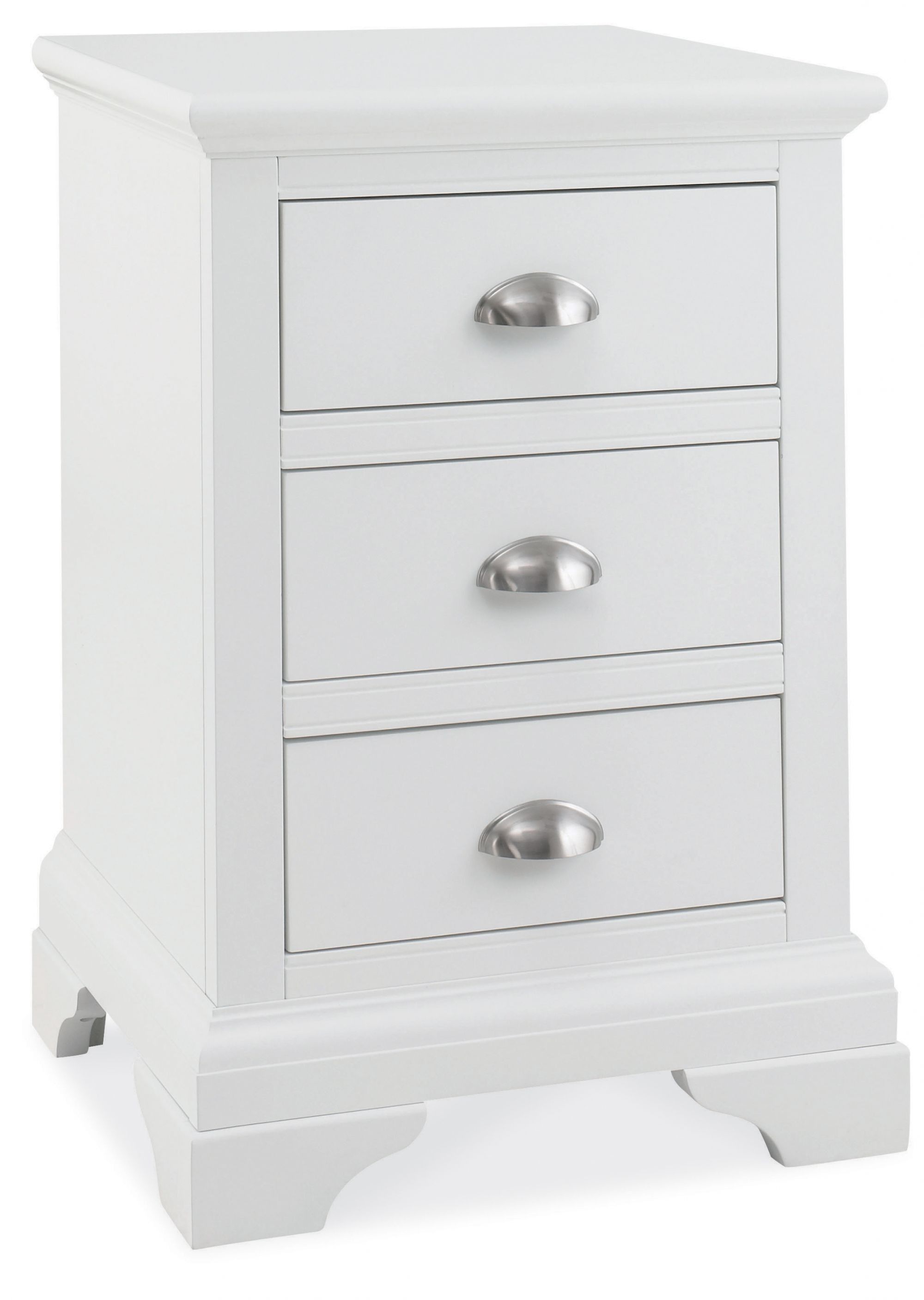 - The stylish Bentley Designs Hampstead White 3 Drawer Nightstand features three soft-closing drawers all in a fresh white paint finish. This bedside table is a practical, functional and stylish addition to any home.