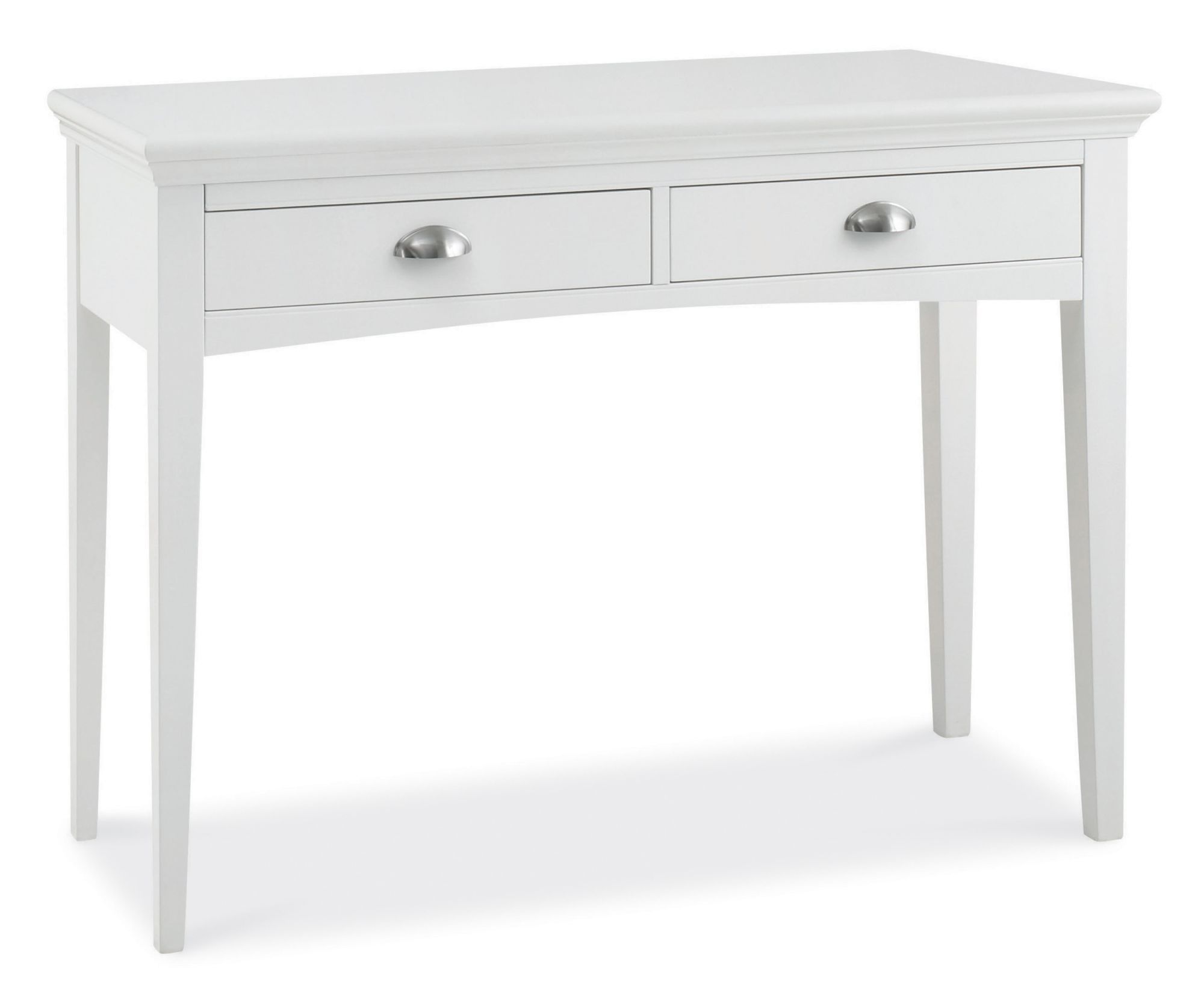 - This beautiful stylish Hampstead White Dressing Table has practical soft-closing drawers and a crisp, white paint finish offering a fresh canvas to suit any bedroom décor.
