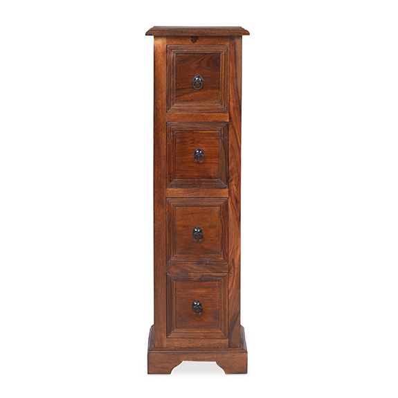- The Jali Living Arbor CD Unit is a solid and characterful storage piece designed to keep media neatly organised while adding warmth to your interior. Crafted from solid Indian rosewood, it displays rich natural grain patterns and a robust handcrafted finish that makes each unit unique. Its tall, compact form offers generous storage capacity without taking up excessive floor space, making it ideal for living rooms or entertainment areas.