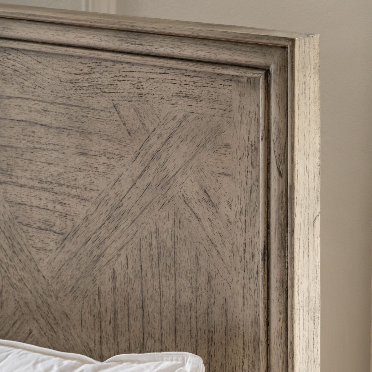 - The Lovell King Size Bedstead features rounded legs and beautiful natural markings. French Colonial style with a hint of classical inspiration, the Lovell range features a stunning inlaid parquet-style design. The wood is brushed to re-create a sun-aged look, emphasising its strong character with traditional hues. The Lovell range is renowned for its natural antique patina which being hand-crafted from a natural product using real wood solids and real wood veneers means that as nature intended, each pattern will vary according to the grains and features of the pieces of wood used for each table. Mindy wood is a naturally grown timber selected locally in Indonesia having been planted by the Dutch hundreds of years ago and derives from the European Ash tree. It's used for its character of grain displaying the beauty of the natural timber.