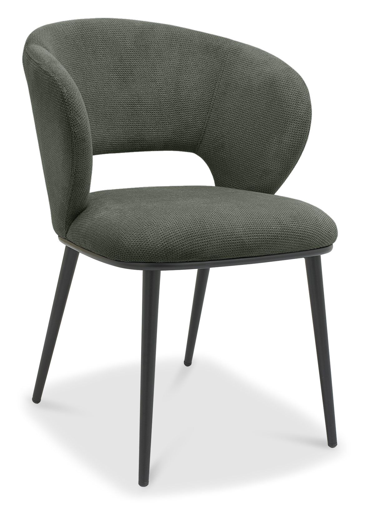 - Thoughtfully designed, the Luca chair’s curved back is designed to cocoon around you, offering both comfort and elegance. Upholstered in textured beige, green, or grey fabric, or ivory and light grey faux leather, it provides a range of stylish options. Sleek black metal legs add a modern contrast, making it a design staple that complements many interior settings.