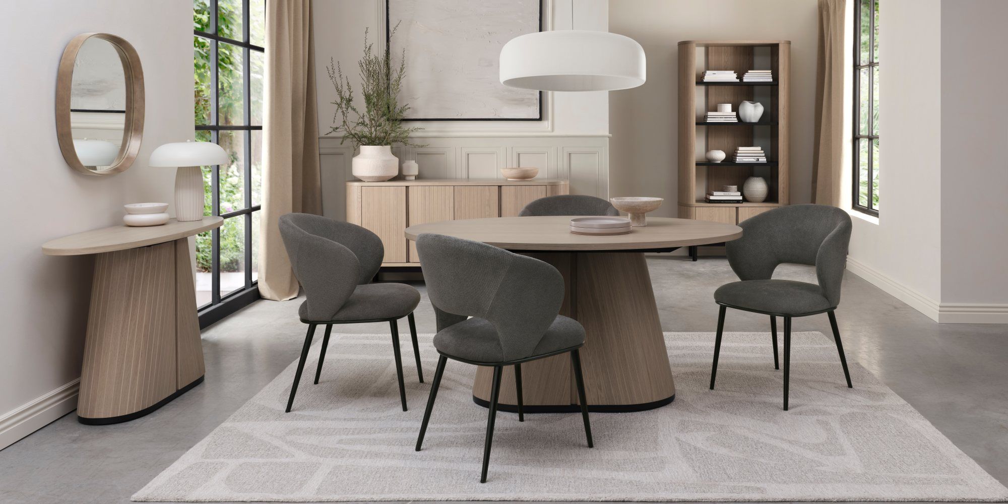 - Thoughtfully designed, the Luca chair’s curved back is designed to cocoon around you, offering both comfort and elegance. Upholstered in textured beige, green, or grey fabric, or ivory and light grey faux leather, it provides a range of stylish options. Sleek black metal legs add a modern contrast, making it a design staple that complements many interior settings.