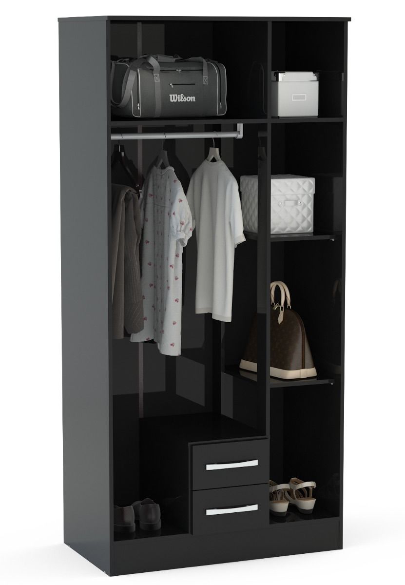 Lynx Black 3 Door 2 Drawer Wardrobe With Mirror