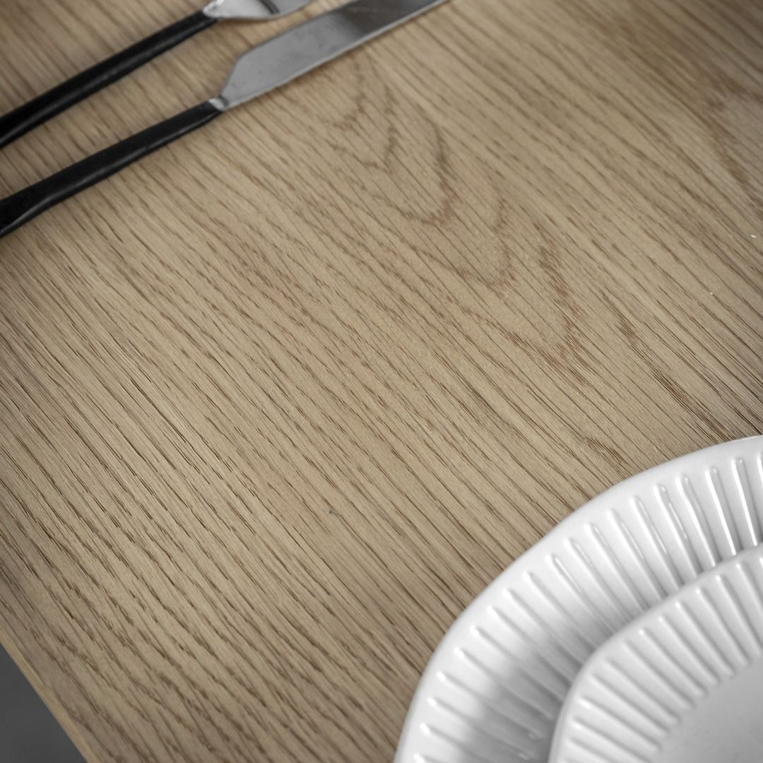 - Mellaed from the finest oak and structural oak veneers where practical, this stunning dining table pairs perfectly with the matching dining bench or chairs. The table offers elegant design, with its simple top and beautifully shaped underframe. The wood has a lovely natural finish. The table is also available in a smoked oak finish, and matching pieces are available.
