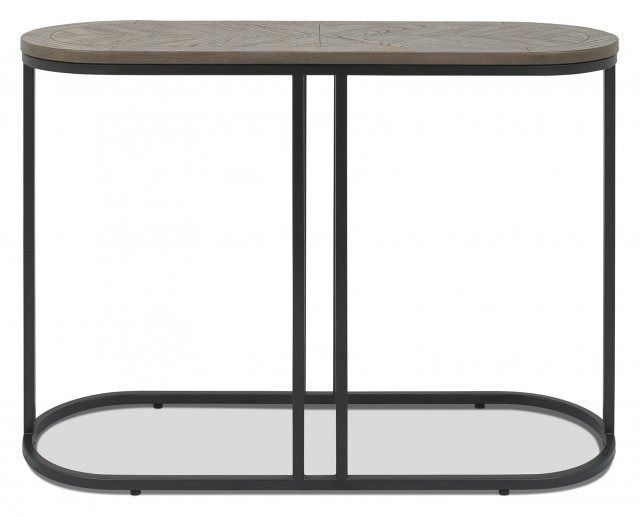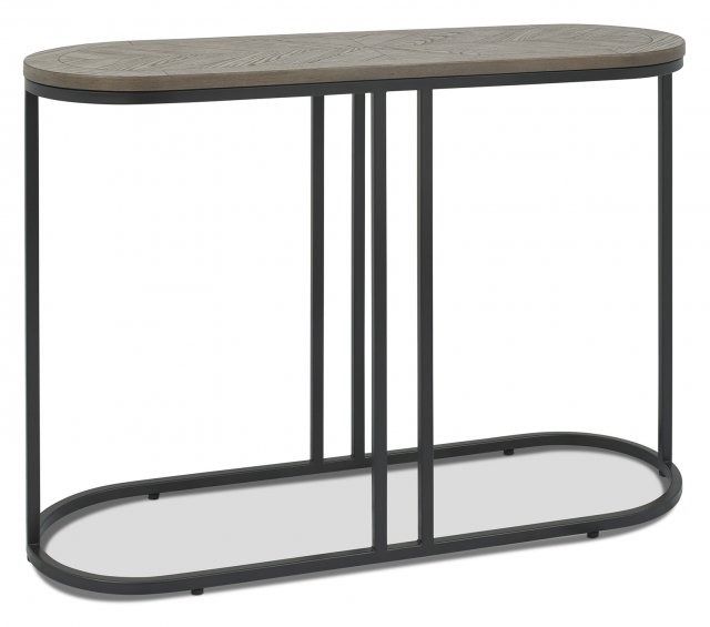 The Monroe Console Table provides a fresh elegance with its saw-cut ash wood top in a crisp silver grey finish, elevated by a delightful chevron patterning. Supported by a peppercorn powder coated metal base comprised of a combination of sleek lines and smooth, circular edges, this table reflects an organic, trendy style while remaining a practical addition to any living space.