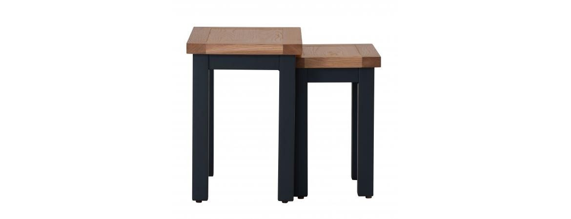 - This nest of 2 tables from Besp-Oak Furniture adds stylish detail to your living room interior. This piece of furniture offers a modern touch to your living room space because of its two-tone painted finish. As part of the Vancouver Compact Black Grey range, it brings that vibrant painted hue that is visually arresting. At the same time, it is built with solid construction to ensure that you can have a piece that is worth the investment!