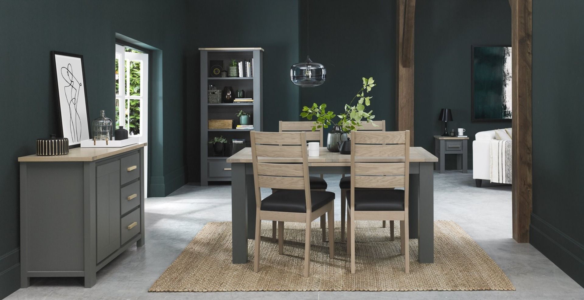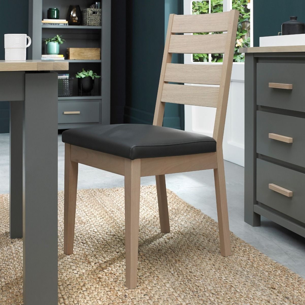 Oakham Scandi Oak Chair - Dark Grey Bonded Leather (Pair)