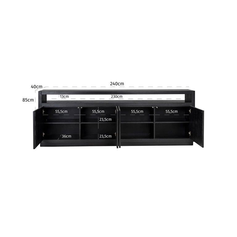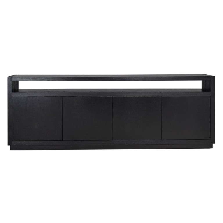 The Oakura 4-Doors Sideboard is finished in bold black oak veneer and built for generous storage with a clean, understated aesthetic. Its elongated silhouette makes it a stylish fit for larger dining rooms or hallways. Crafted to offer both elegance and functionality, it’s a modern storage solution.