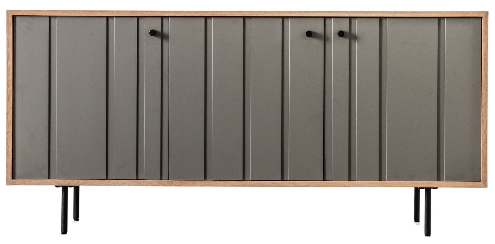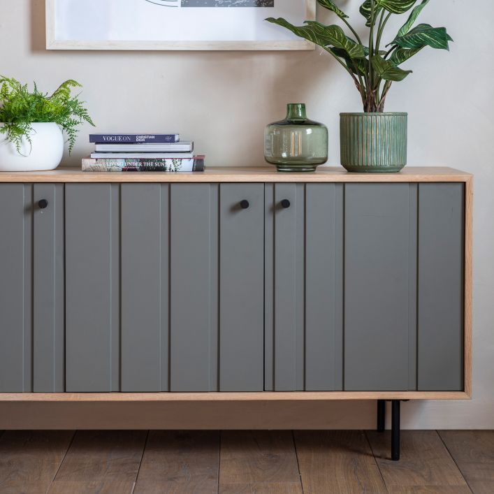 - The Shinto 3 Door Sideboard combines stylish design with practical storage space. Including a large cupboard space, there is an internal drawer within the sideboard which is ideal for your smaller items. Thin black metal legs and handles add the finishing touch.