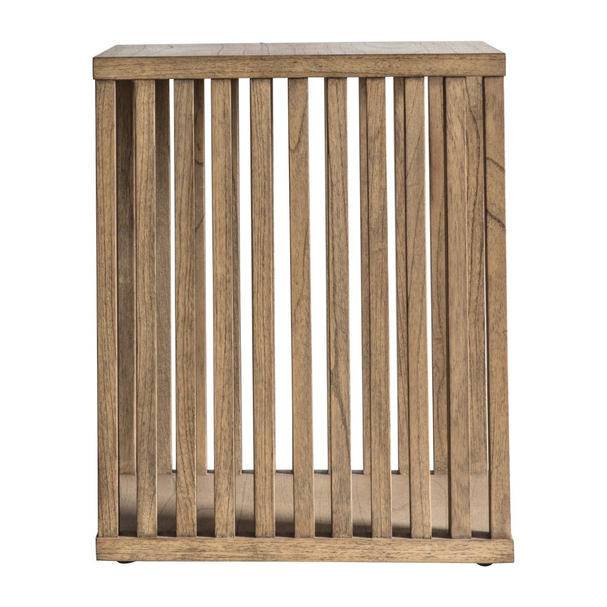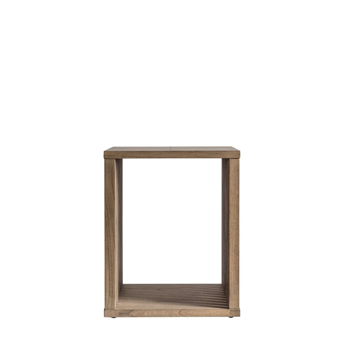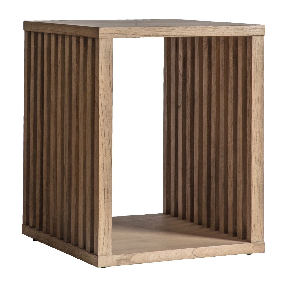 - The Temple Side Table is a beautiful fusion between Japanese and Scandinavian design, the Temple features simple yet stylish wooden frames, with textured oriental inspired detailing to elicit an earthy, minimalistic style that nods to the traditional Japanese approach to furniture design. Vaunting the natural beauty of its materials through a simplistic but intriguing cubic design, the Temple Side Table will add individuality to the interior. Featuring atraditional lightly weathered finish and variegated, slatted side panels, the Temple Supper Table is an awe-inspiring subtle feature piece for any room in the home. Part of the Temple collection by Gallery Living, coordinating items are available.