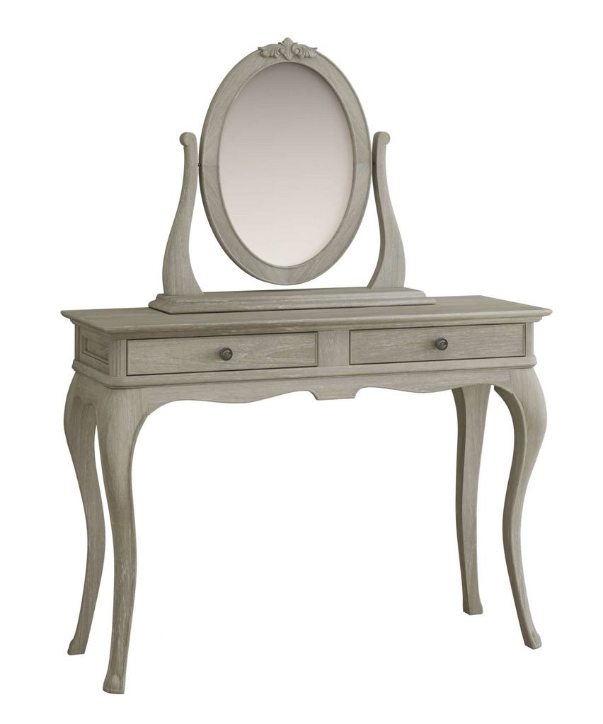 - The Camille Dressing Table is part of the beautiful French inspired collection, Camille from Willis & Gambier, featuring graceful curves and delicate silhouettes. Crafted from solid Oak and oak veneers, this dressing table has been completed in a rustic and antique weathered finish, which will enhance and blend seamlessly into most bedroom styles and decors. An elegant bedroom range, the Camille range is stylish and sure to turn your bedroom into a boudoir. Matching items available.